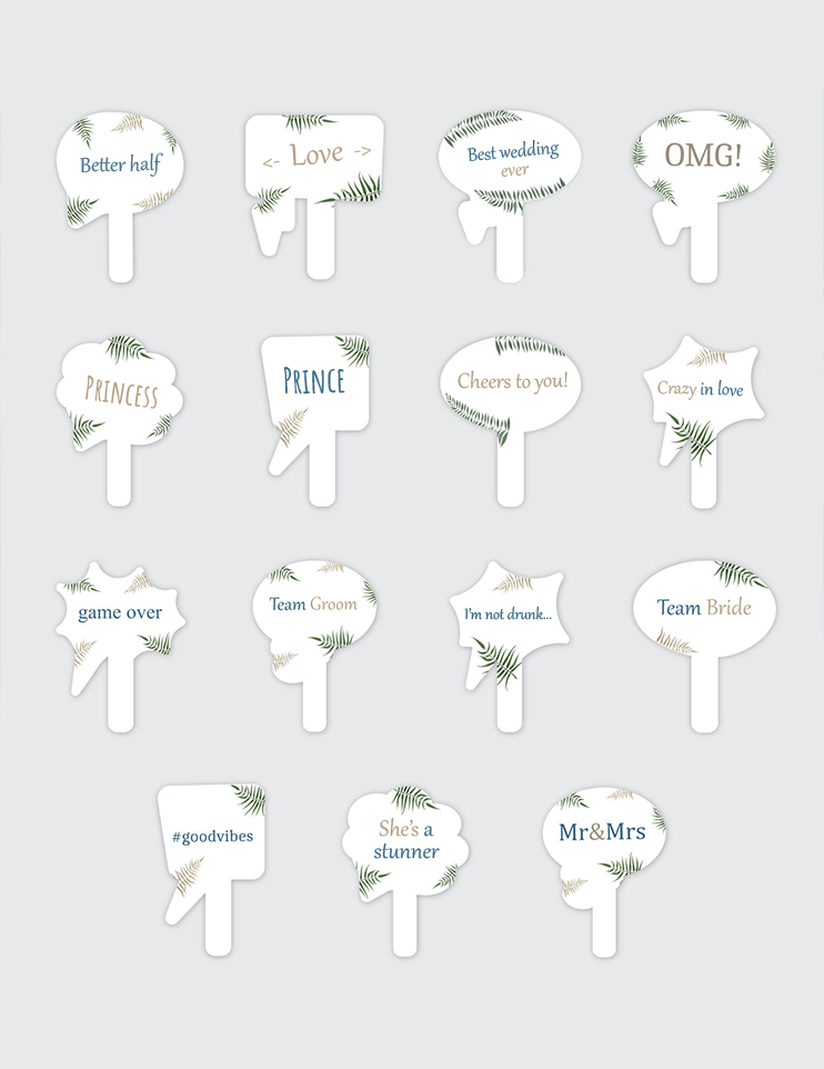 Sada 15 tištěných fotocedulek - udělají focení atraktivnějším a dodají mu jedinečný charakter. Je to skvělý fotografický gadget, například na narozeniny, rozlučku se svobodou, svatbu nebo jiné příležitosti.